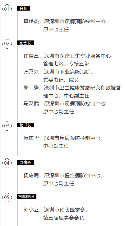 深圳市预防医学会第六届理事会领导
